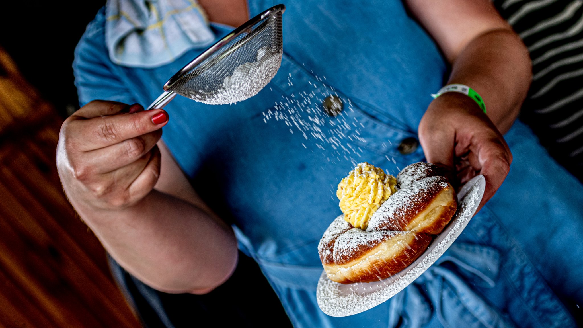 A taljánoknak sok mindent köszönhet, hisz ott ismerkedett meg ezzel a technológiával úgy igazán. Onnan meríti az ihletet a receptekhez, persze, mindent a sajátjára formál. Ebből kaptam ízelítőt a hétvégén, a Debrecziener Gourmet fesztiválon, ahol burrata és aszalt paradicsom, kovászolt langallón, göngyölt malacsült meggy chutney-val, kovászolt lepényen és virágfánk bodzával és almával, illetve málnás mascarpone krémmel és amaretti morzsával volt a menü. Mindezzel, csupáncsak annyi probléma volt, hogy főleg a virág fánk nem annyira kedvez annak hogy ne óda szülessen.
