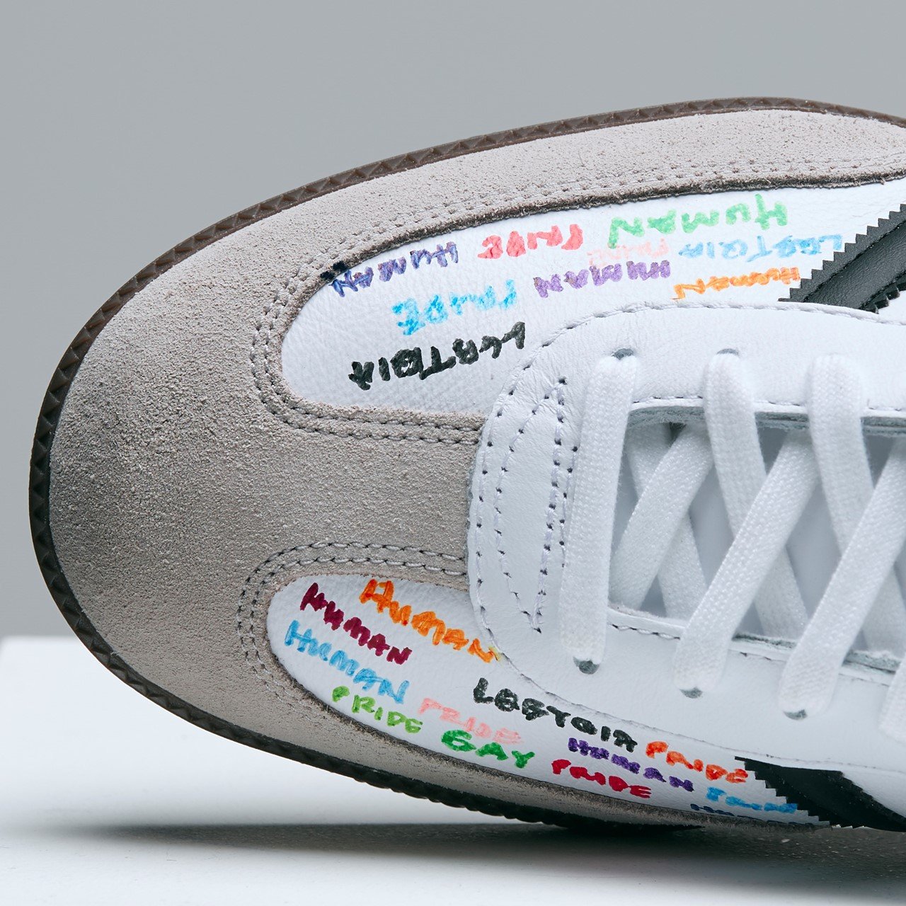 A Proude projektben résztvevőket felkérték, hogy újragondolják az ikonikus Adidas Samba-t, kifejezve ezzel, hogy nekik mit jelent a “büszke” az egység, az egyenlőség és az eredetiség (A pride angolul büszkeséget jelent, a proud büszkét, a prouder pedig a melléknév fokozását, azaz: büszkébbet).